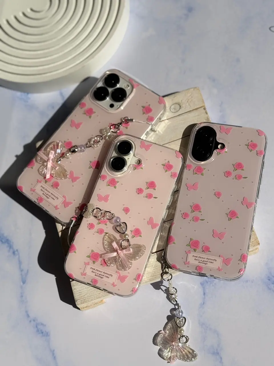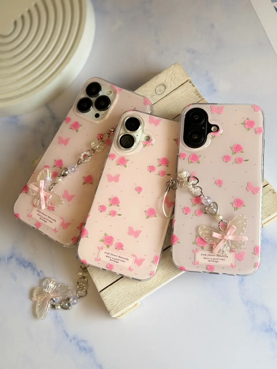 قاب Pink Flower Butterfly با آویز (کدC2116)